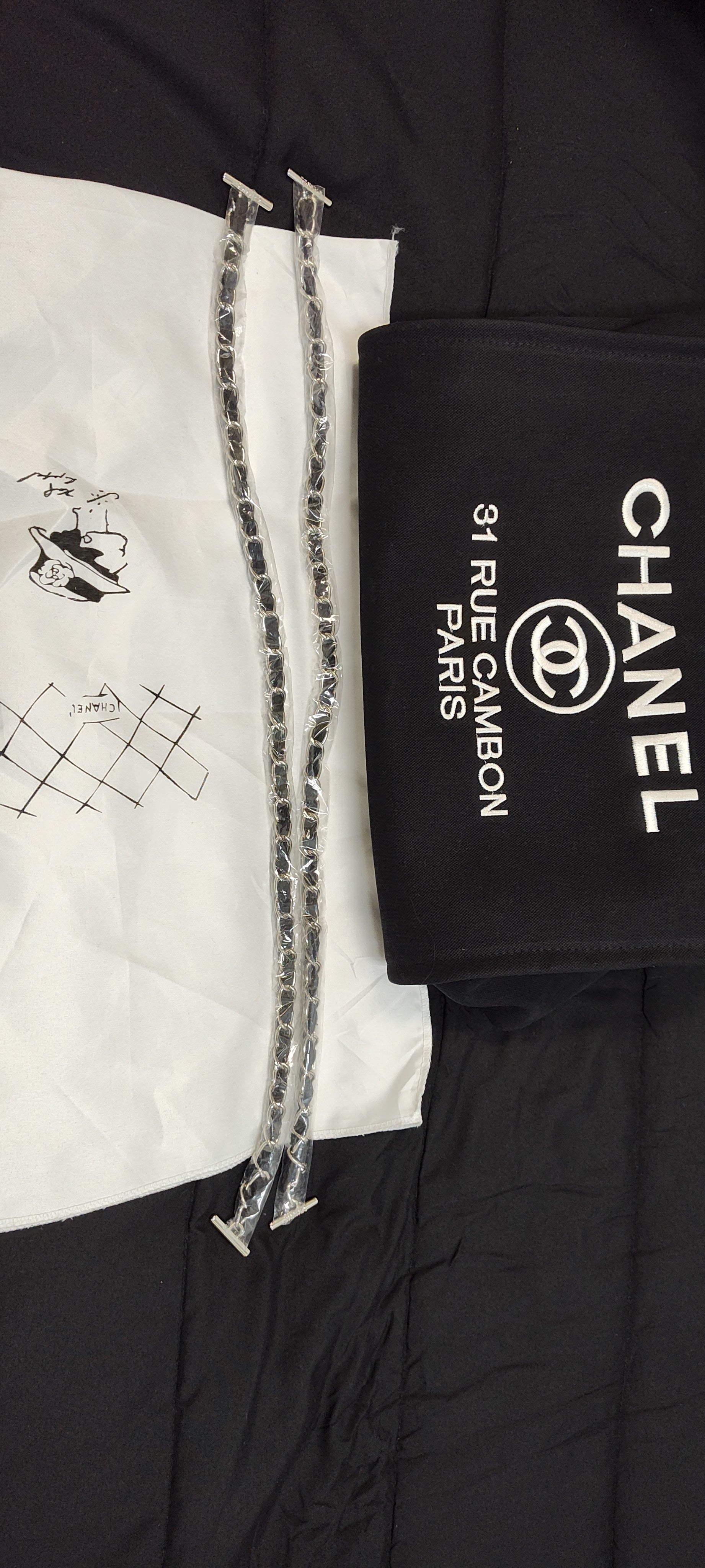 The front of the Tote is adorned with the brand name and the familiar interlocking CC logo. An extra detail is the addition of the “31 Rue Cambon” on the base of the bag, referring to its place of origin.