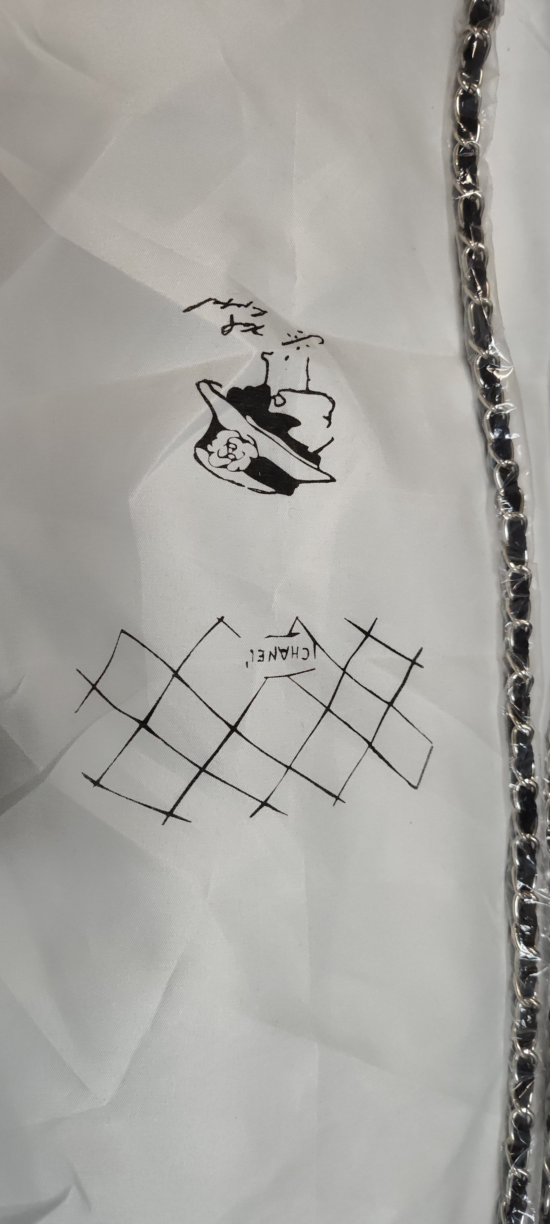 Inspired By: Chanel deauville tote white embroidered letters, canvas bag