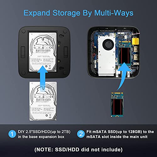 - [Intelligent Design]-What makes the small computer windows 11 stand out from other mini PCs is that it has an empty expansion bay to allow adding a 2.5-inch SSD or HDD (up to 2TB). Comes with two HDMI ports connecting dual monitors easily, simplify and double your work efficiency. Also, the VESA mount can free yourself from the messy desktop. It is convenient to hide the mini desktop PC windows 11 on the back of the monitor or HDTV.
