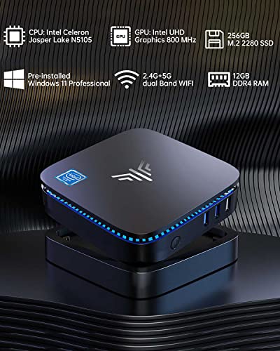 - [Small but Powerful]-KAMRUI AK1 PRO Mini PC windows 11 about 5.04 x 5.04 x 2.05-Inch. Powered by Celeron Jasper Lake N5105(4MB cache, up to 2.9Ghz), delivers incredible responsiveness and smooth than Celeron J4125, N5095 and Celeron N5100 processor. Easily switch back and forth between more applications with 12GB DDR4 memory and 256GB M.2 2280 solid-state drive storage. Very fast and no lagging or jumping.