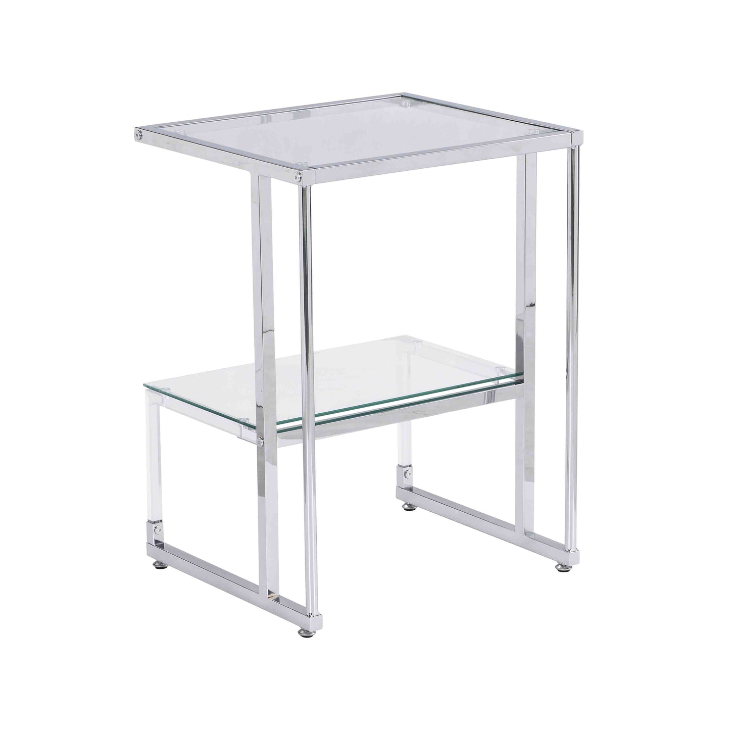 This Silver Chrome Side Table, a contemporary and stylish addition to your living room or bedroom. Crafted with a combination of chrome metal, acrylic, and tempered glass, this end table exudes modern elegance. Placed next to your sofa, it becomes the centerpiece of your relaxation space, adding a touch of sophistication to your interior.