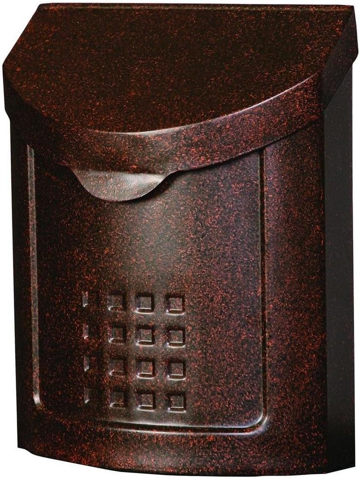 The Lockhart’s curved design, stylish notched front and aged copper finish distinguish it from more traditional wall-mounted mailboxes. The medium-sized mailbox holds plenty of mail and parcels, and is made from heavy-duty galvanized steel so that it will retain its durability and looks for a long time. The wide incoming mail slot and locking mechanism are secured by a lift-tab door. The Lockhart is pre-assembled for easy installation and can be flush mounted on many different wall surfaces.