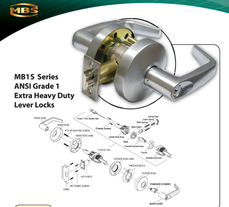 - Heavy duty chassis, through bolt trim with various lever styles available.
