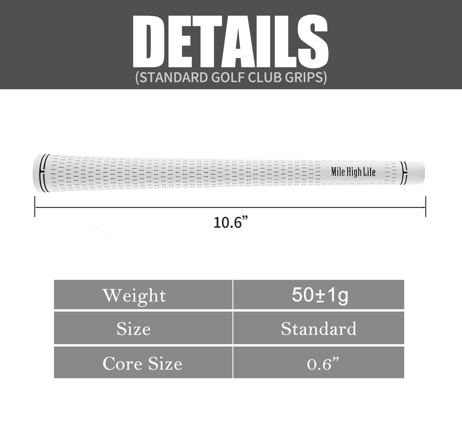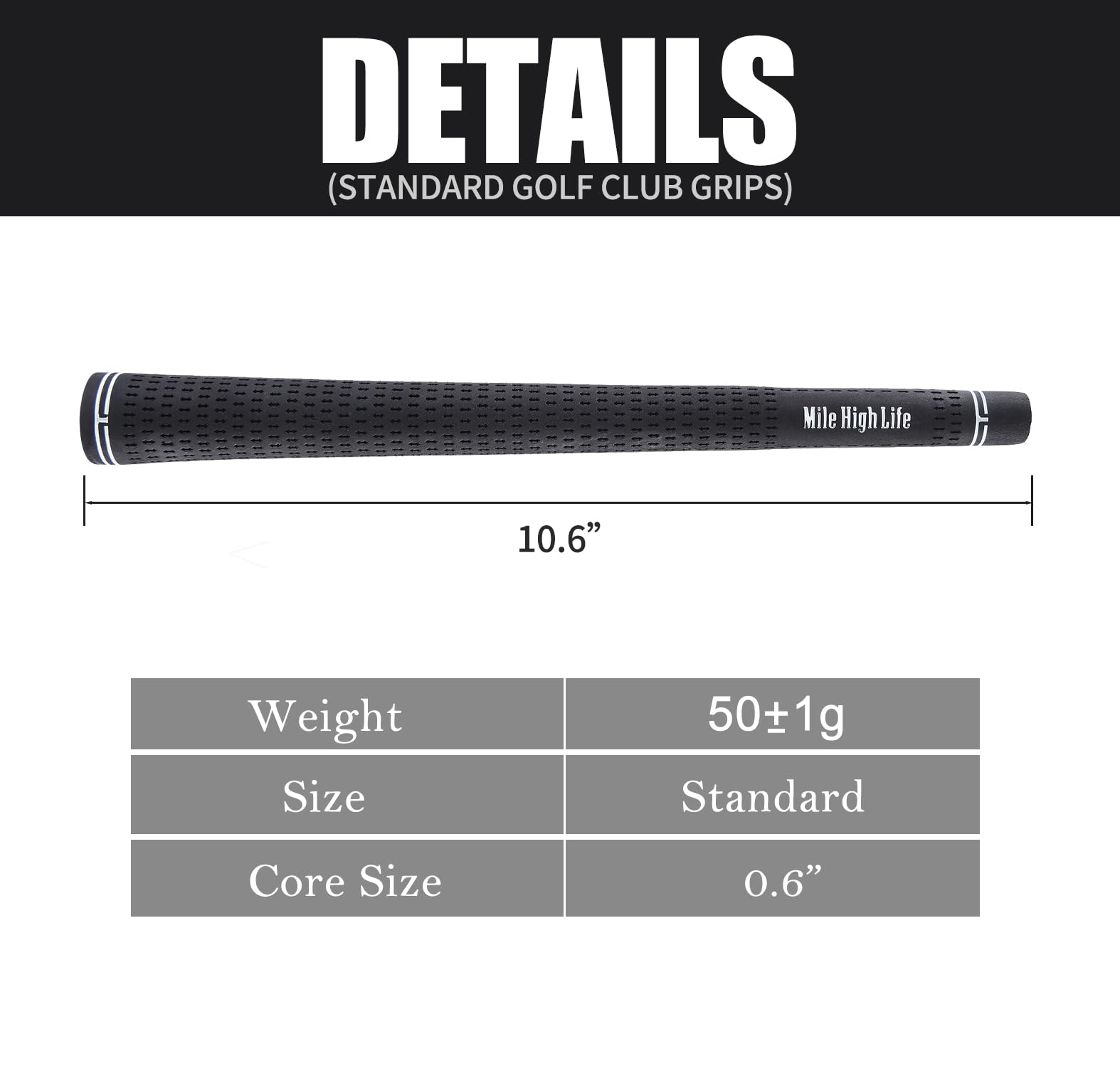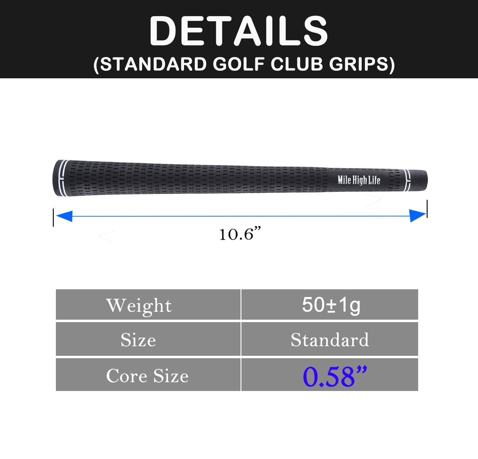 Mile High Life Golf Grips | Standard Golf Club Grips | 3 Pack or 13 Pack Golf Grips Bundle | Entry Level Rubber Golf Grip for Men, Women, Juniors