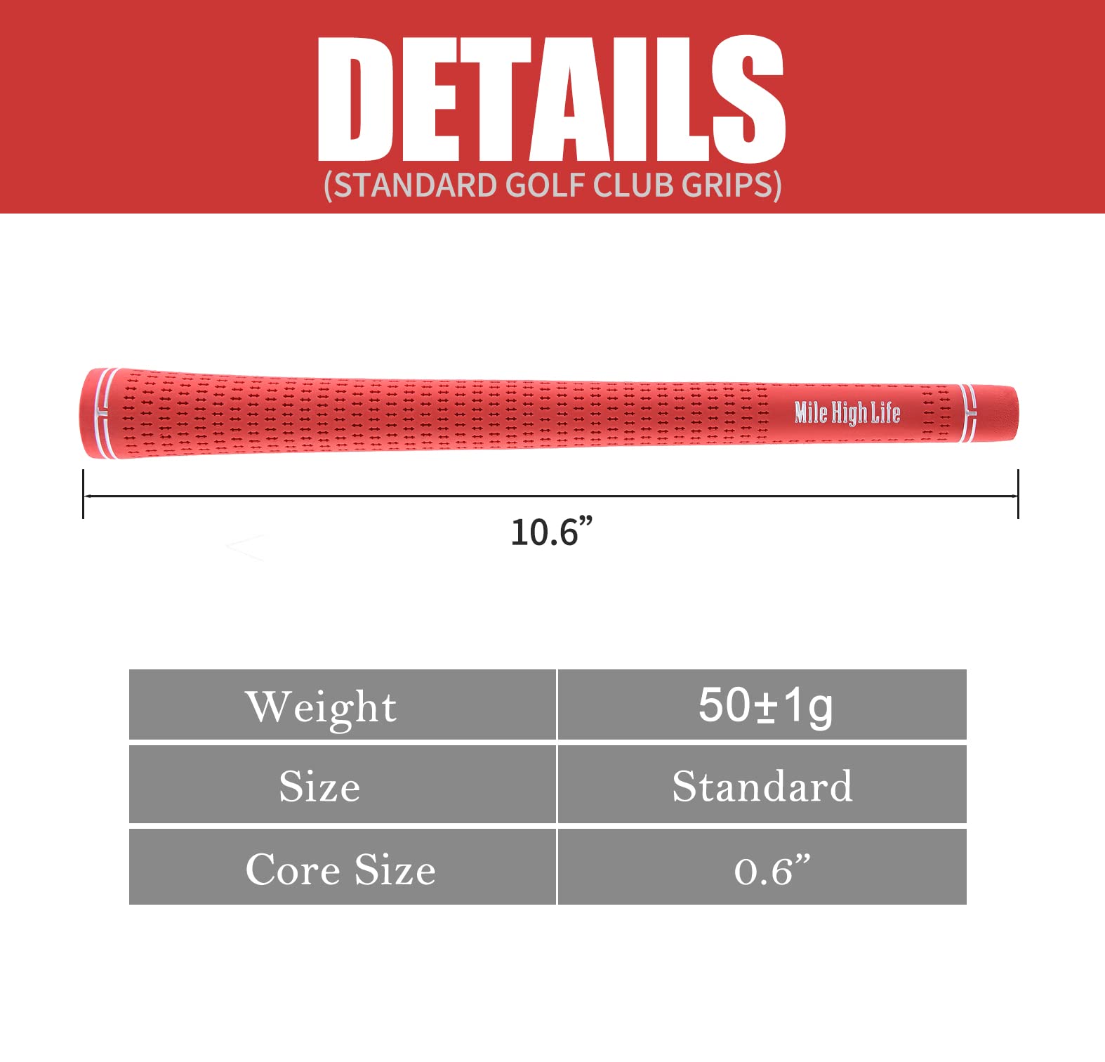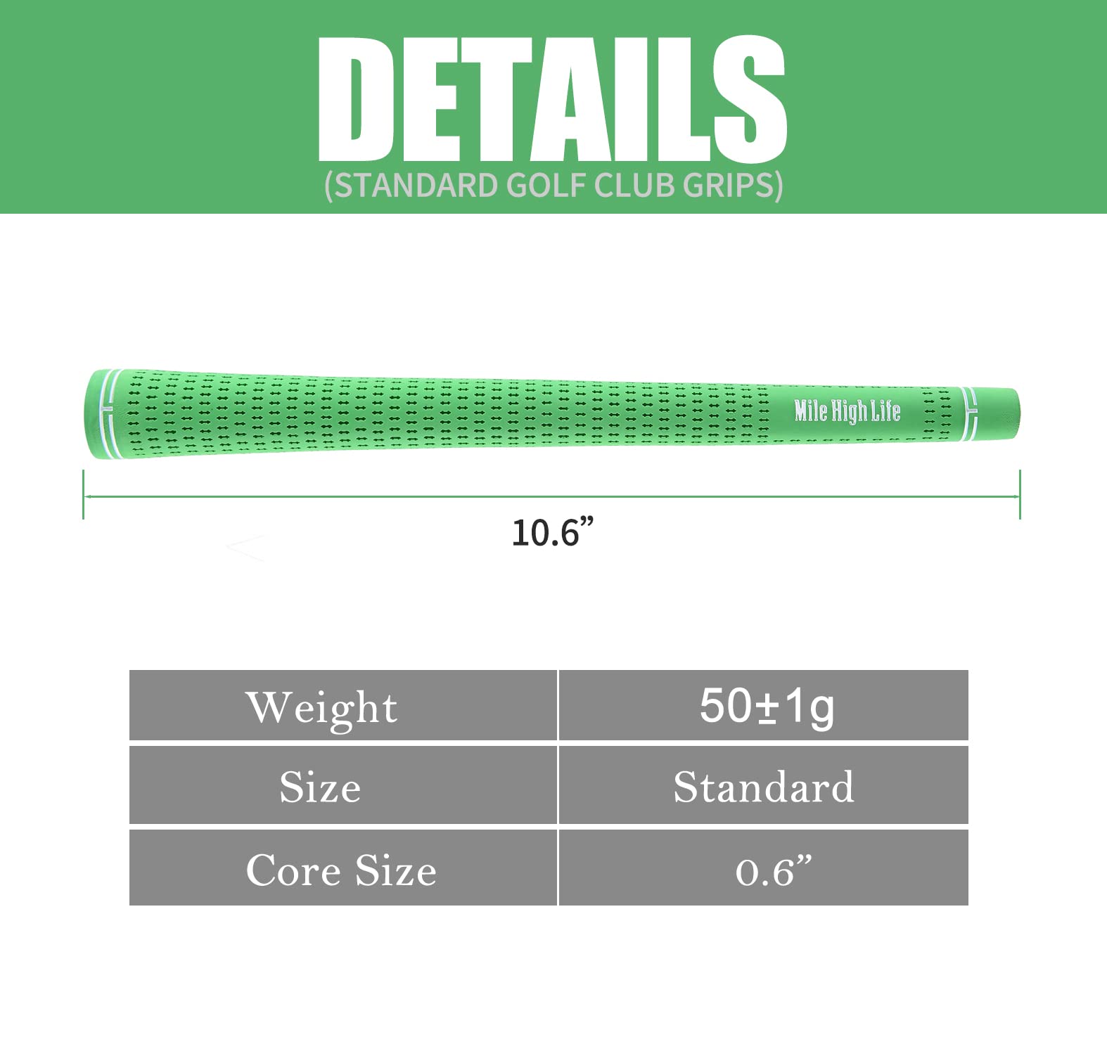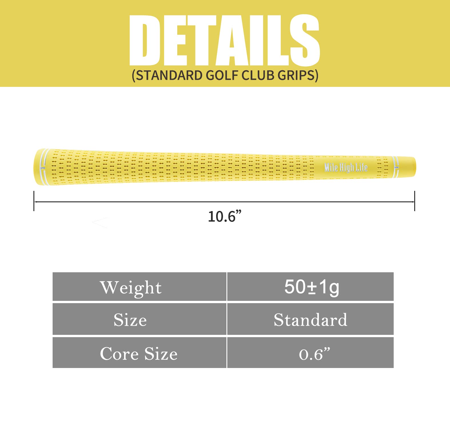 Mile High Life Golf Grips | Standard Golf Club Grips | 3 Pack or 13 Pack Golf Grips Bundle | Entry Level Rubber Golf Grip for Men, Women, Juniors