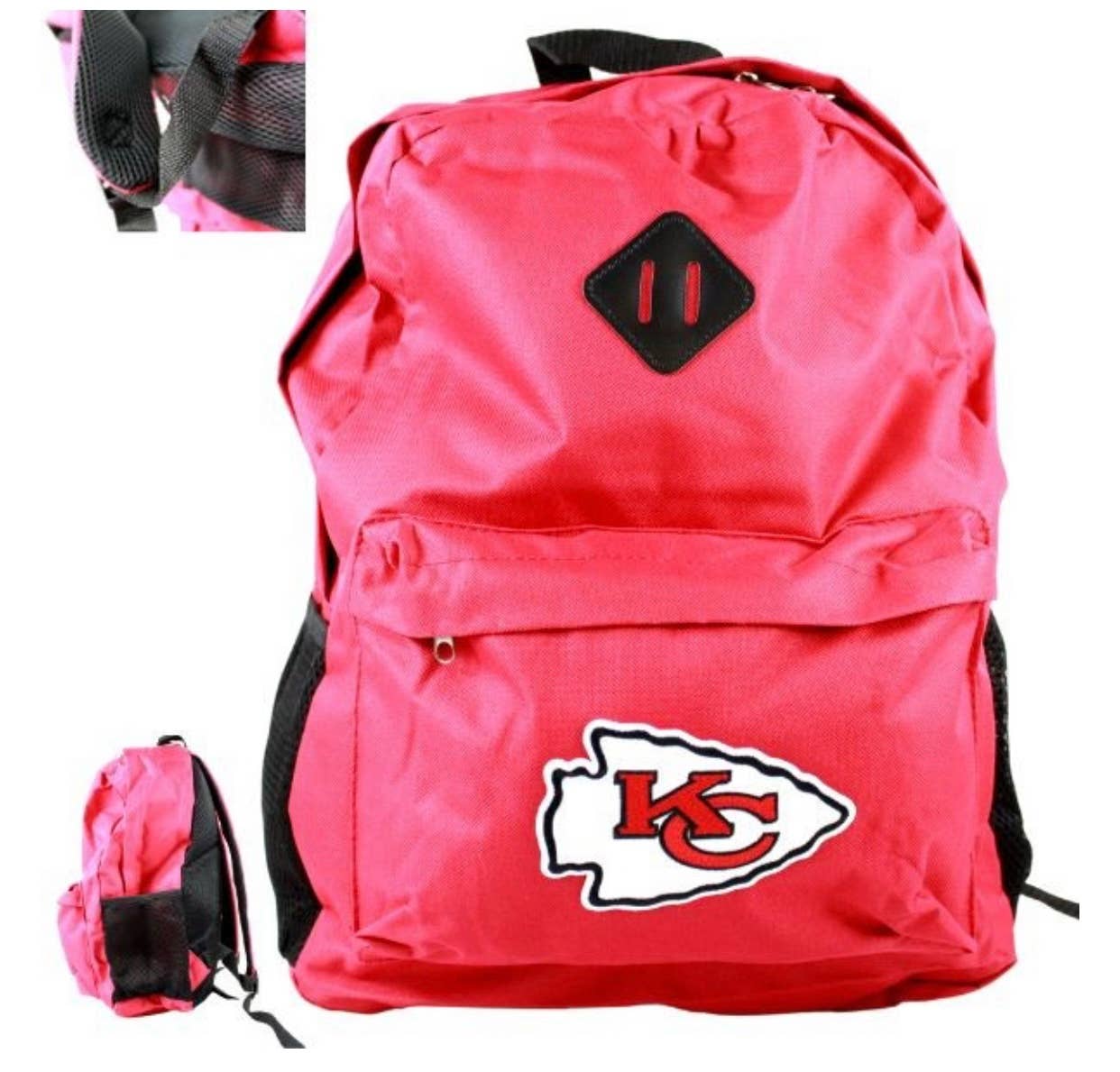 The KC Chiefs backpack is a rendition of a true mojo classic. Only this time, its design is featured the Kansas City Chief's NFL Football Team. With a padded tablet sleeve and front zip pocket, this backpack supports function and style. The classic Chief's backpack is a rendition of a true mojo design. Only this time, it's NFL serious style, complete with the teams logo and your favorite red color. With a padded tablet sleeve and front zipper pocket, this backpack supports function and style.