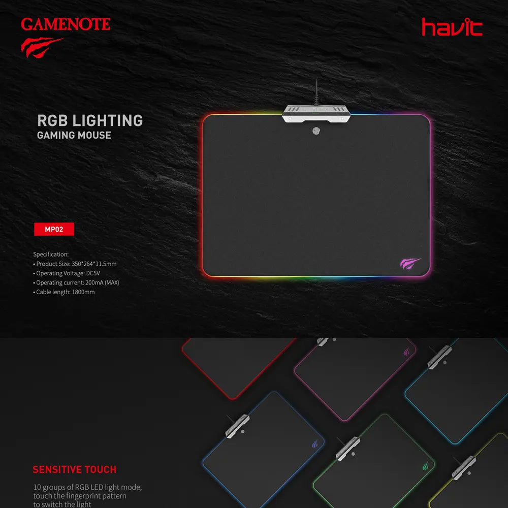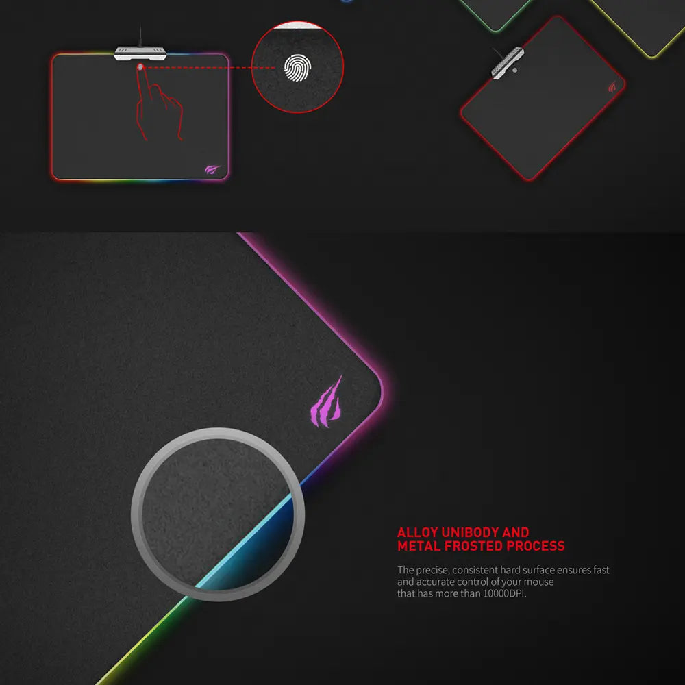 MP02 LED PC light mouse pad, USB cable mouse pad, 10 color modes, non-slip, touch button