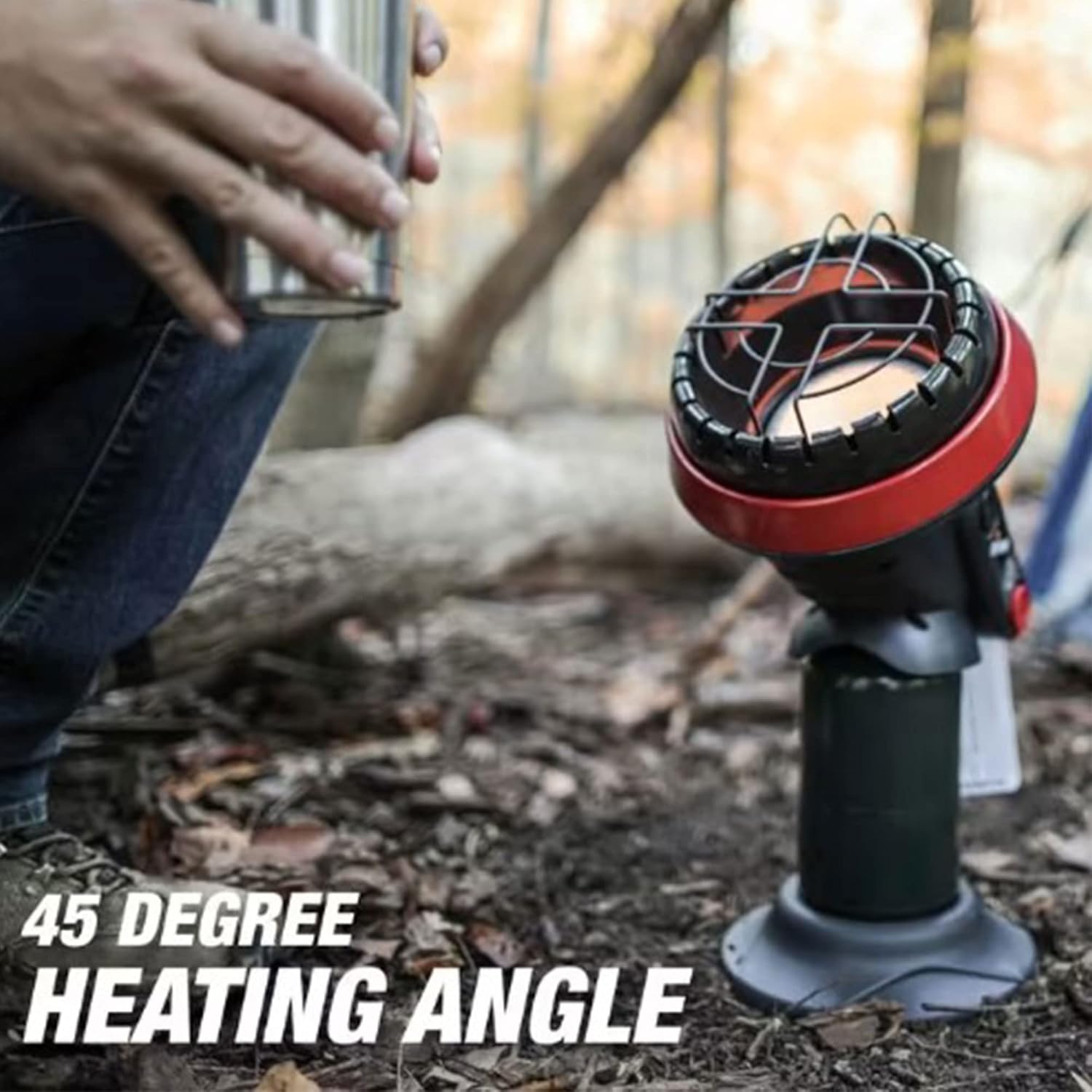 - Heats any space of up to 95 square feet; Uses 1 pound disposable propane tank as a fuel source; 45-degree heating angle helps direct radiant heat where you need it most