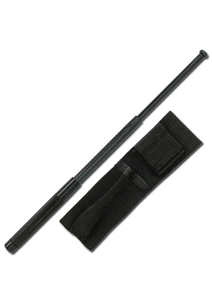 Baton21in OVERALLSTAINLESS STEELBLACK EXPANDABLE BATONBLACK TEXTURED STEEL HANDLEINCLUDES HEAVY DUTY NYLON SHEATH