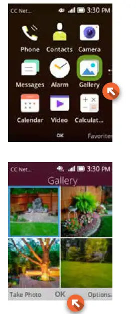 To view a picture that you’ve taken, press the OK Key to get to your menu. Scroll to Gallery and press the OK Key.
