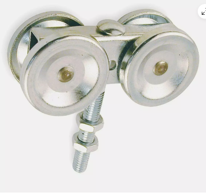 2-Wheel Bracket, Sliding Door Box Rail, Max. Weight (Lb.) 600 lb, Steel, Bright Zinc Finish, Length (In.) 4 5/8 in, Height (In.) 4 in, Width (In.) 1 17/32 in, Max. Wheel Dia. (In.) 2 1/8 in, Ball Bearings, Number of Wheels 4, Steel, Hardware Included, For Use With Doors Weighing Up To 600 Pounds