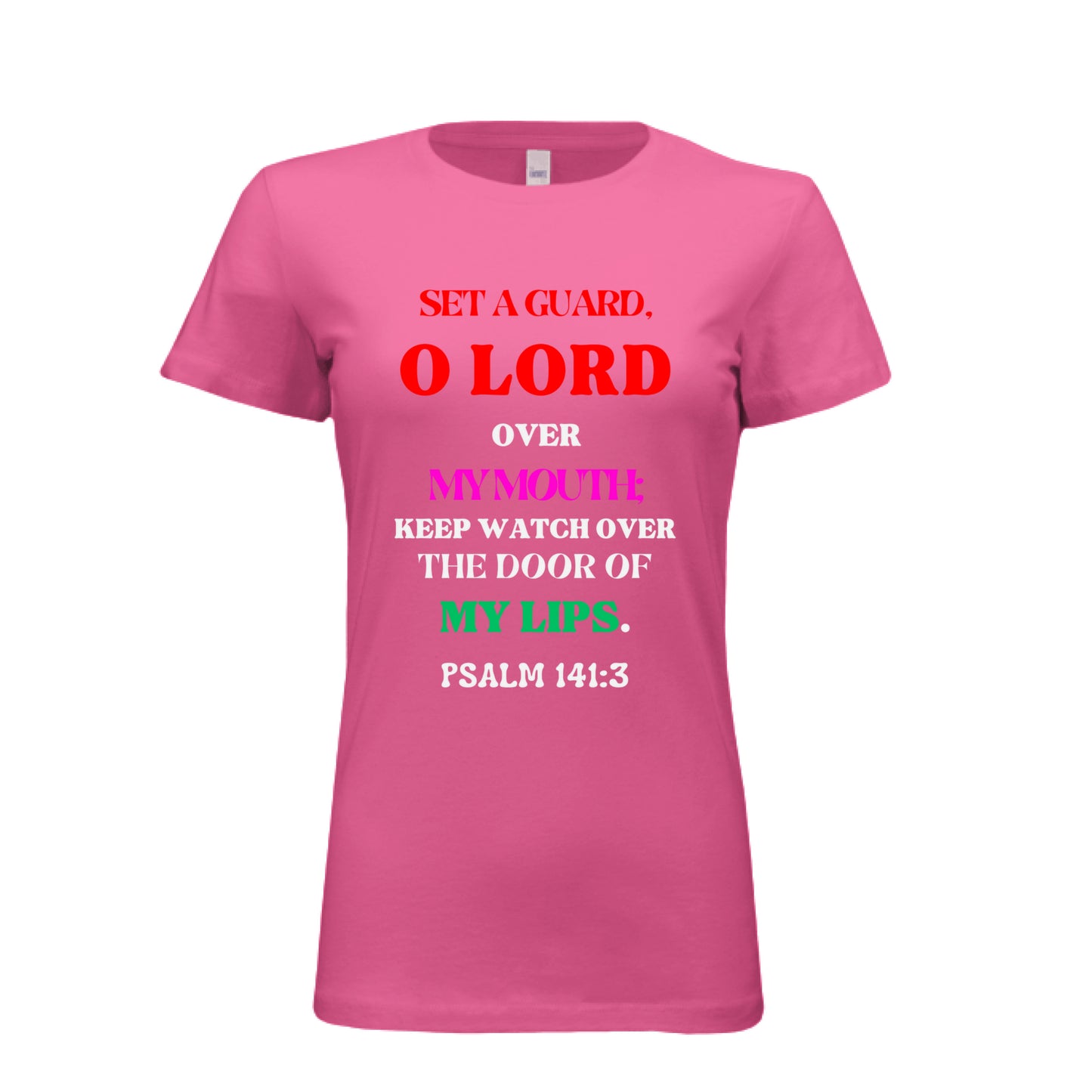 Speak life and wear wisdom with this “Set a guard, O’ LORD, over my mouth; keep watch over the doors of my lips” tee. Perfect for faith-driven women who value style and scripture, it’s made from luxuriously soft combed ringspun cotton with a slim, flattering fit and longer length for layering.