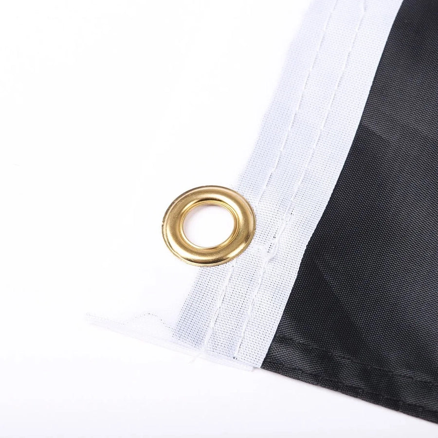 Introducing the 3 x 5 foot "One Nation Under God" flag - a patriotic and faith-filled addition to any collection. This high-quality flag is made of durable nylon material, ensuring it can withstand various weather conditions and retain its vibrant colors. The flag features metal grommets that make it easy to install on any standard flagpole. The powerful message of "One Nation Under God" is prominently displayed in bold, block letters, reminding all who see it of our country's founding principles and the importance of faith in our daily lives. The imagery on the flag includes powerful symbols of faith and patriotism, such as Jesus, the cross, and the American flag. The black, grey, and red color scheme creates a striking contrast with the traditional white and blue of the American flag, making this flag truly eye-catching. Whether displayed at home, in a place of worship, or outside a business, this "One Nation Under God" flag is sure to inspire and uplift all who see it. It i