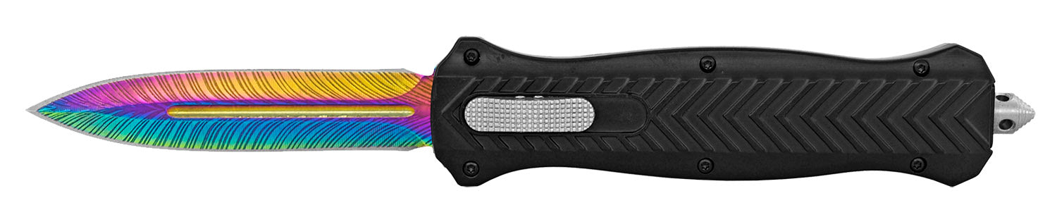 OTF 5.25" Trax Out the Front Pocket Knife - Rainbow Titanium