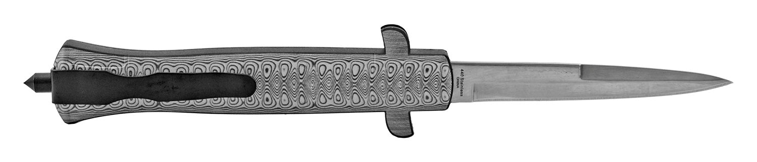 OTF 5.5" Out the Front OTF Automatic Concealed Blade Folding Pocket Knife - Damascus Pattern