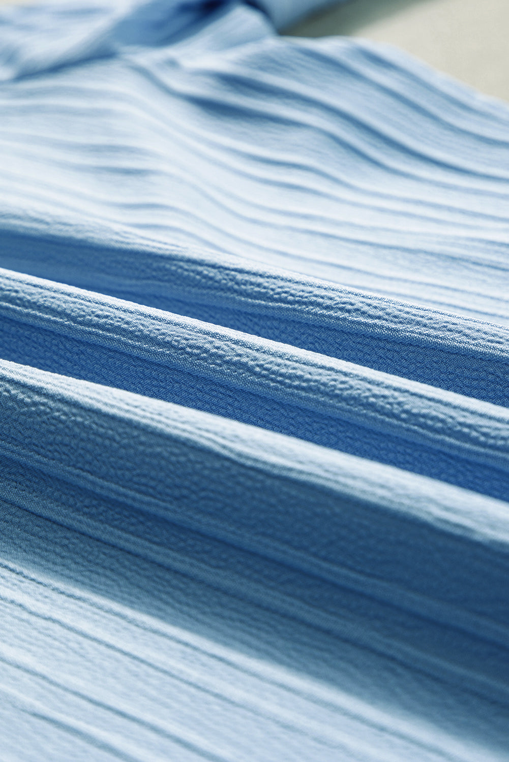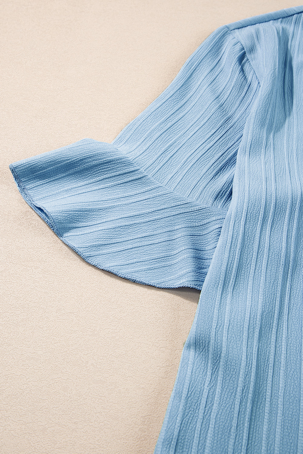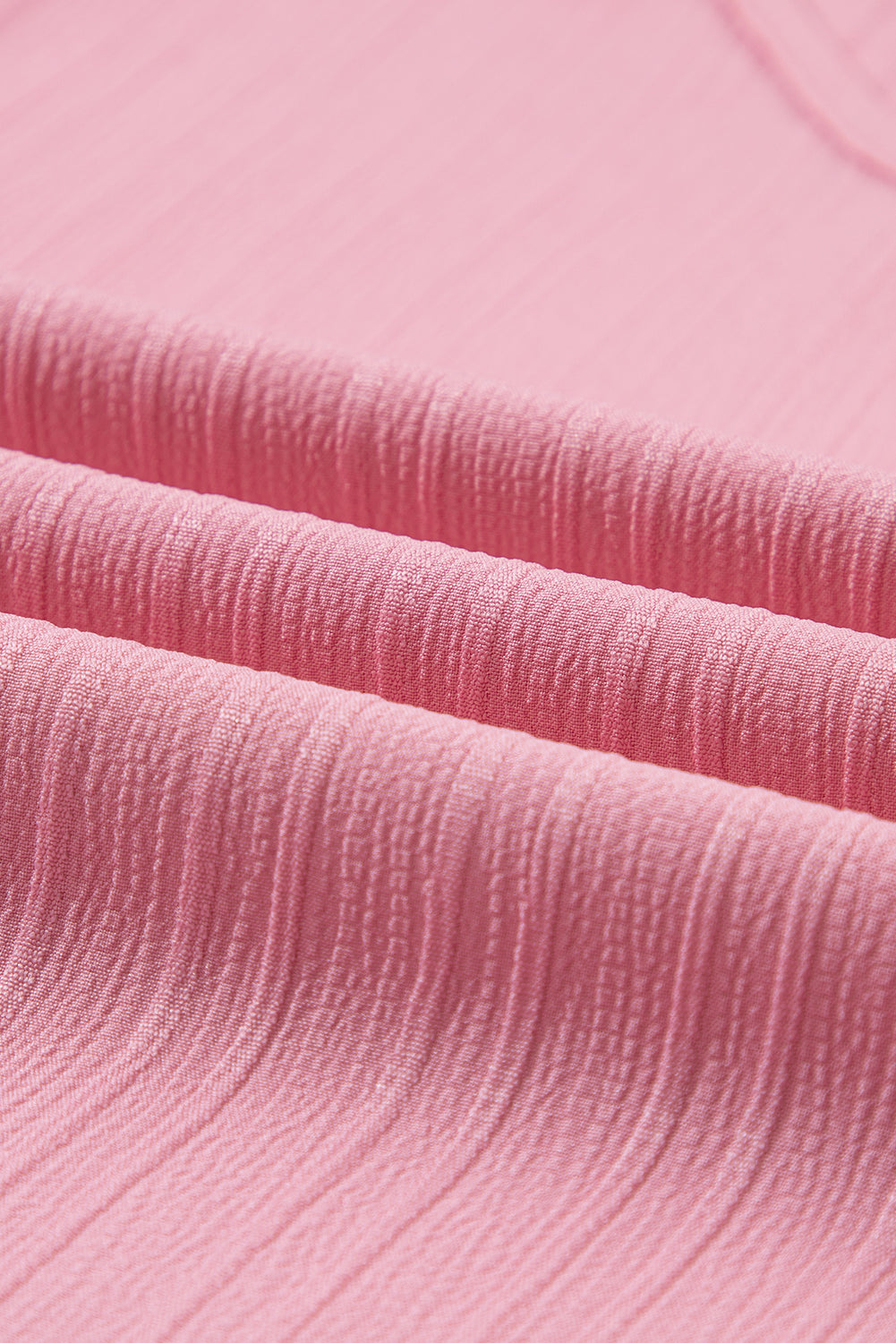 Peach Blossom Ruffled Half Sleeve V Neck Textured Top