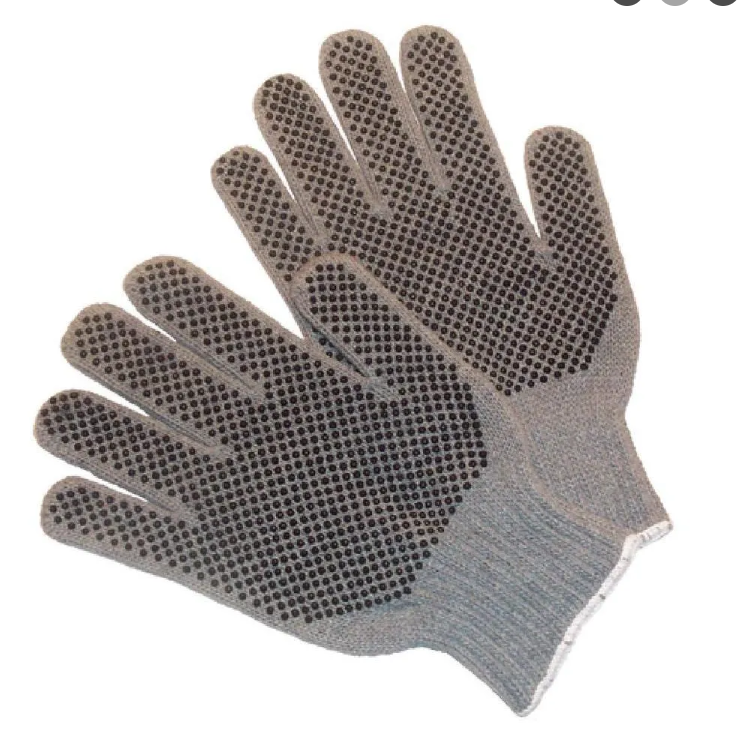 These X-large, poly-cotton gloves have a hemmed cuff/elastic knit wrist and a dotted finish. They have a PVC coating, breathable fabric, and a solid grip and are available in 12 pairs per polybag, high-grip performance, and seamless knit construction.