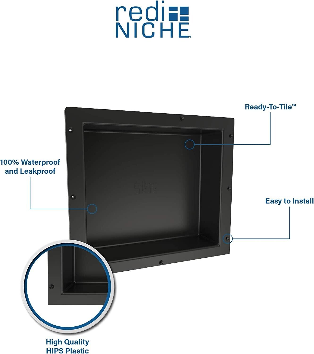 Durable & long-lastingAll Redi Niche recessed shower shelves are waterproof, leak-proof and made of high quality plastic to withstand heavy-duty use. |