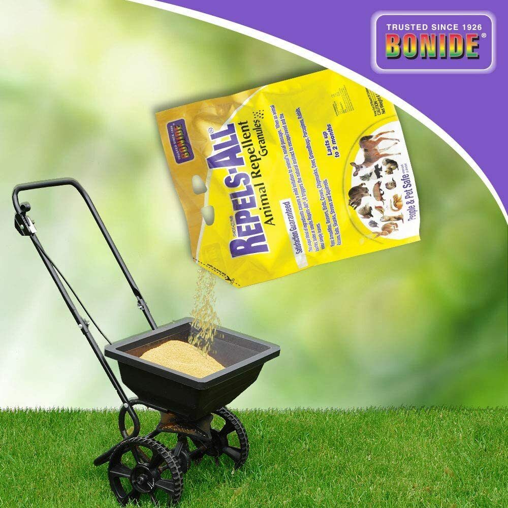 A convenient granular formulation of our popular Repels All liquid. Triggers genetically and biologically ingrained fear and flight responses in a multitude of animal intruders, all without harm to the animals. It may be used around edibles, and treats up to 1,500 square feet. This product will last up to 2 months, protecting plants and property year-round. It is people and pet safe when used as directed. Let the pests know that you're garden isn't their dinner!