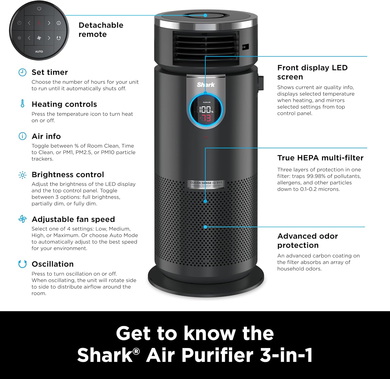 - WHAT'S INCLUDED: Shark Air Purifier 3in1 & Nanoseal HEPA Filter.