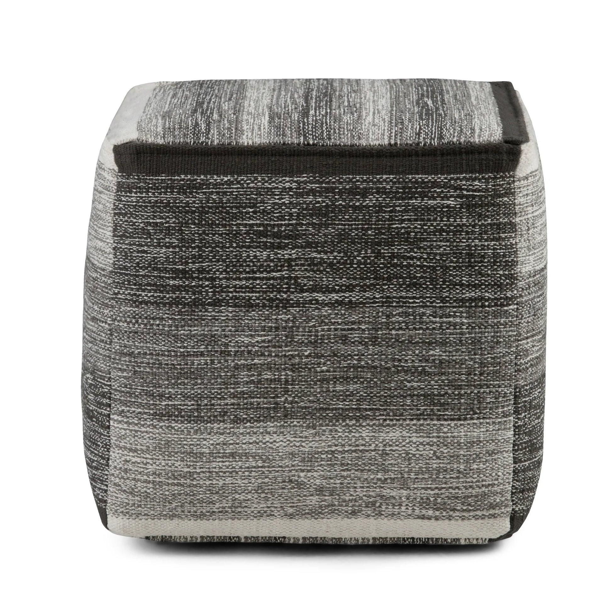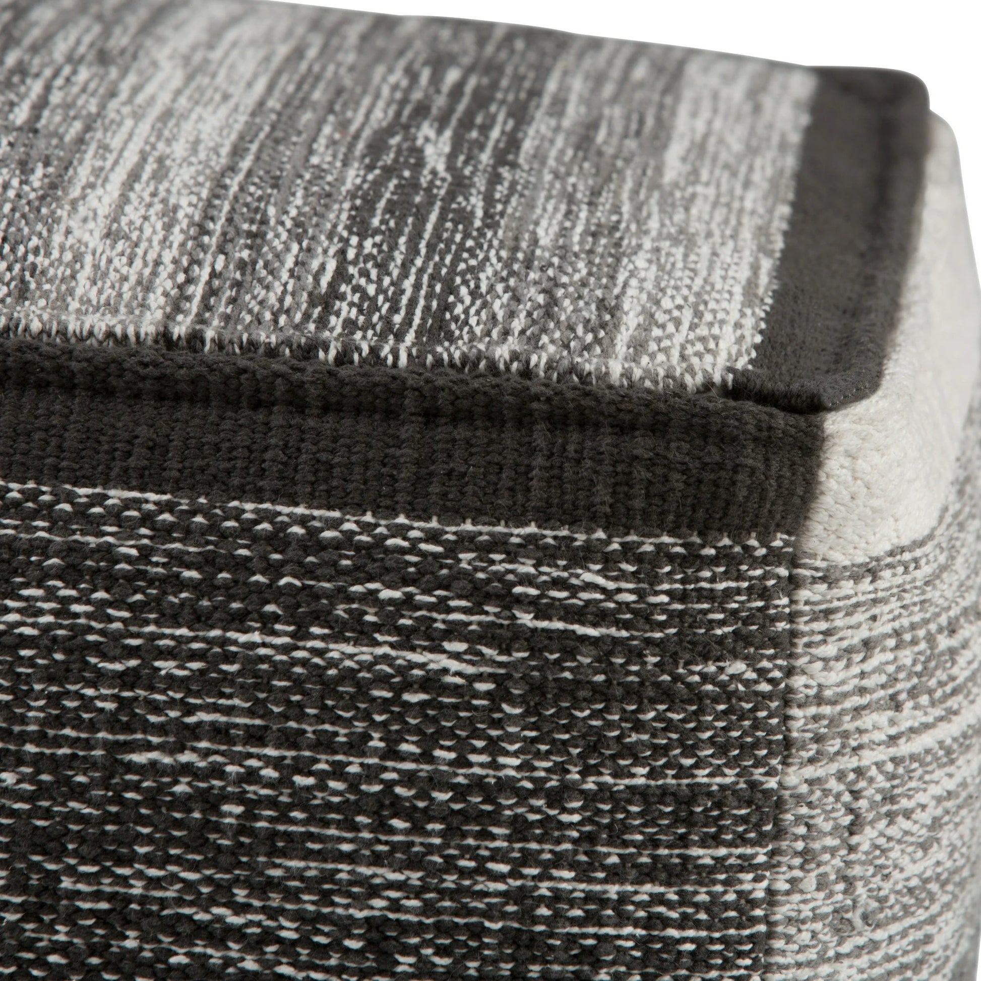 Simpli Home Naya Boho Cube Pouf in Patterned Gray Melange Cotton