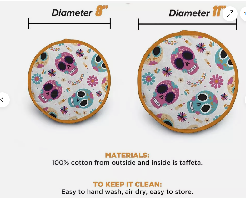 - DURABLE DOUBLE-SIDED - Crafted from high-quality festive design fabric, this tortilla warmer is designed for longevity; One side with multicolored pattern, the other with tortilla warming instructions for microwave