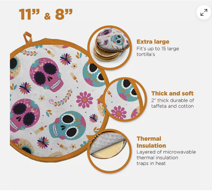 🌮 PERFECT DECORATION for Mexican Fiesta and Taco Tuesday! La tortilla oven has a Soft Cloth thermal Layer insulating Anything that you Place Inside. Remember! Do not place in conventional Oven! Microwave Only.