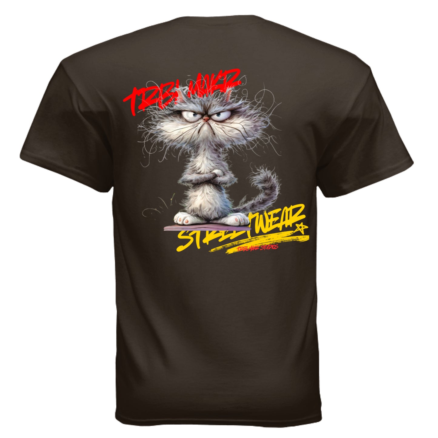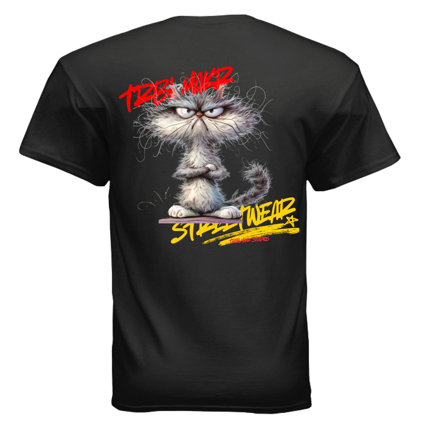 This ain’t your average house cat — this is a feral fashion icon with claws out and zero chill. The front boldly reps TRBLMAKR Streetwear, while TRBLMAKR Studios lurks underneath like the brand that knows it's got nothing to prove.