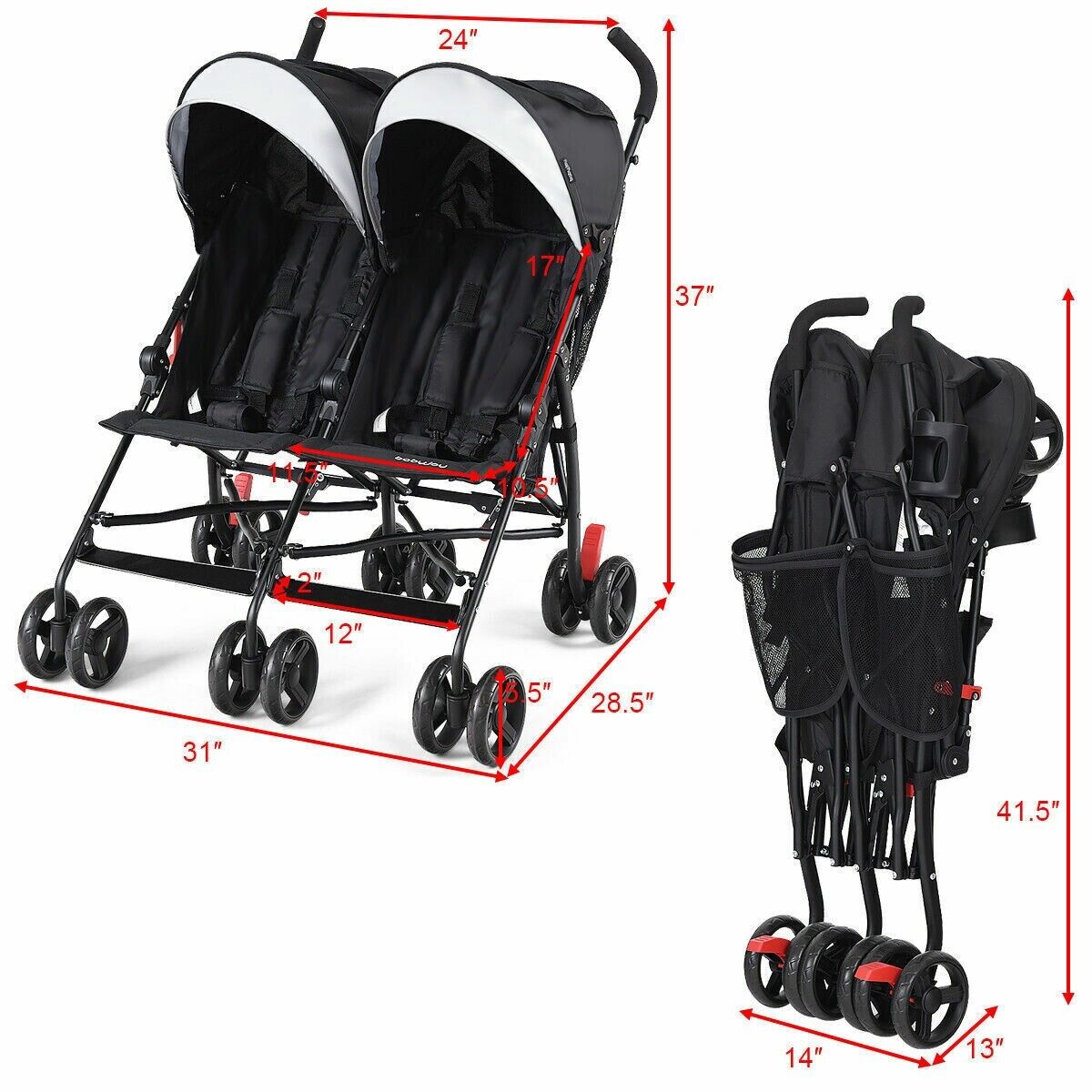Twin Baby Double Stroller Foldable Kids Ultralight Umbrella Stroller Pushchair