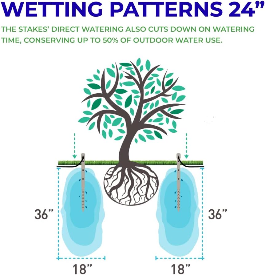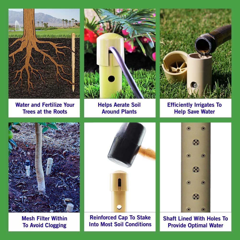 - ROOT WATERING TOOL – The Deep Drip Spikes encourage deeper tree root growth by delivering water, oxygen, nutrients, and fertilizer directly into the soil. Conserve water and reduce surface evaporation.