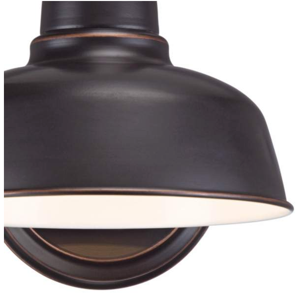 - Oil-rubbed bronze finish. Steel construction. Can be used indoors or outside. Wet location outdoor rated.