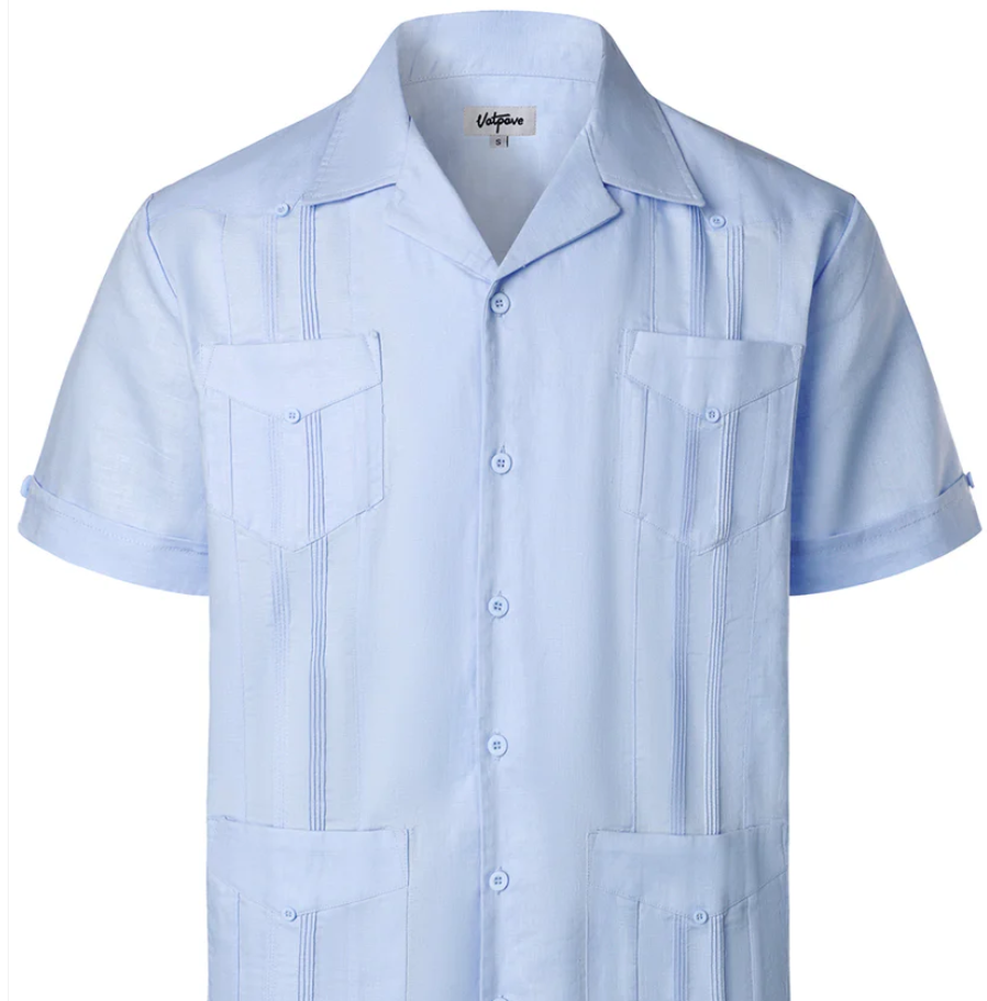 VATPAVE Mens Linen Cuban Guayabera Shirts Casual Button Down Short Sleeve Summer Shirts