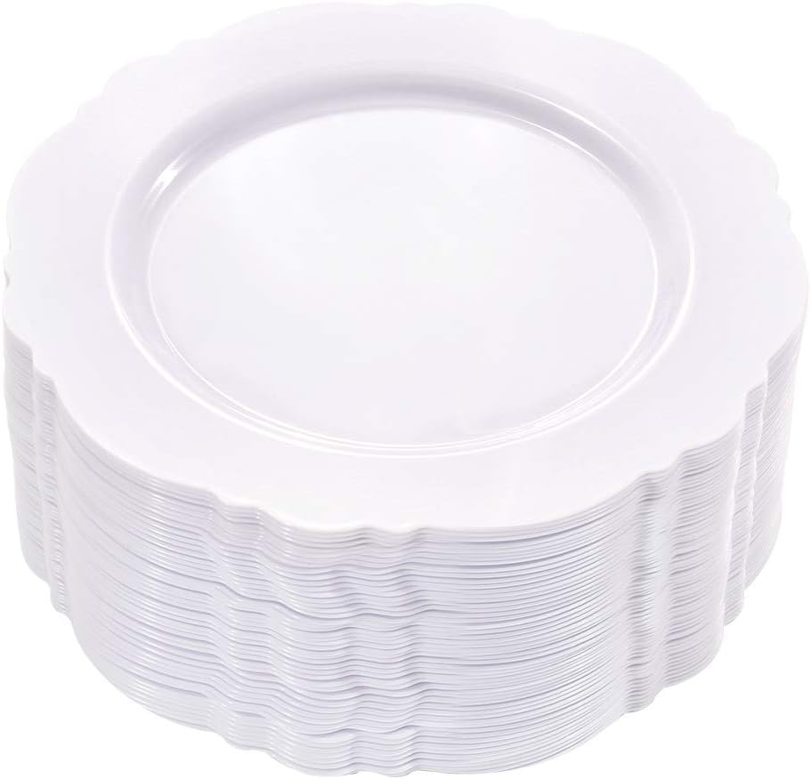 - PREMIUM QUALITY :WDF White Plastic Plates are made of 100% food grade! So These disposable plates can be recycled to help save the environment and will not leak, are resistant to soaking, strong and durable.